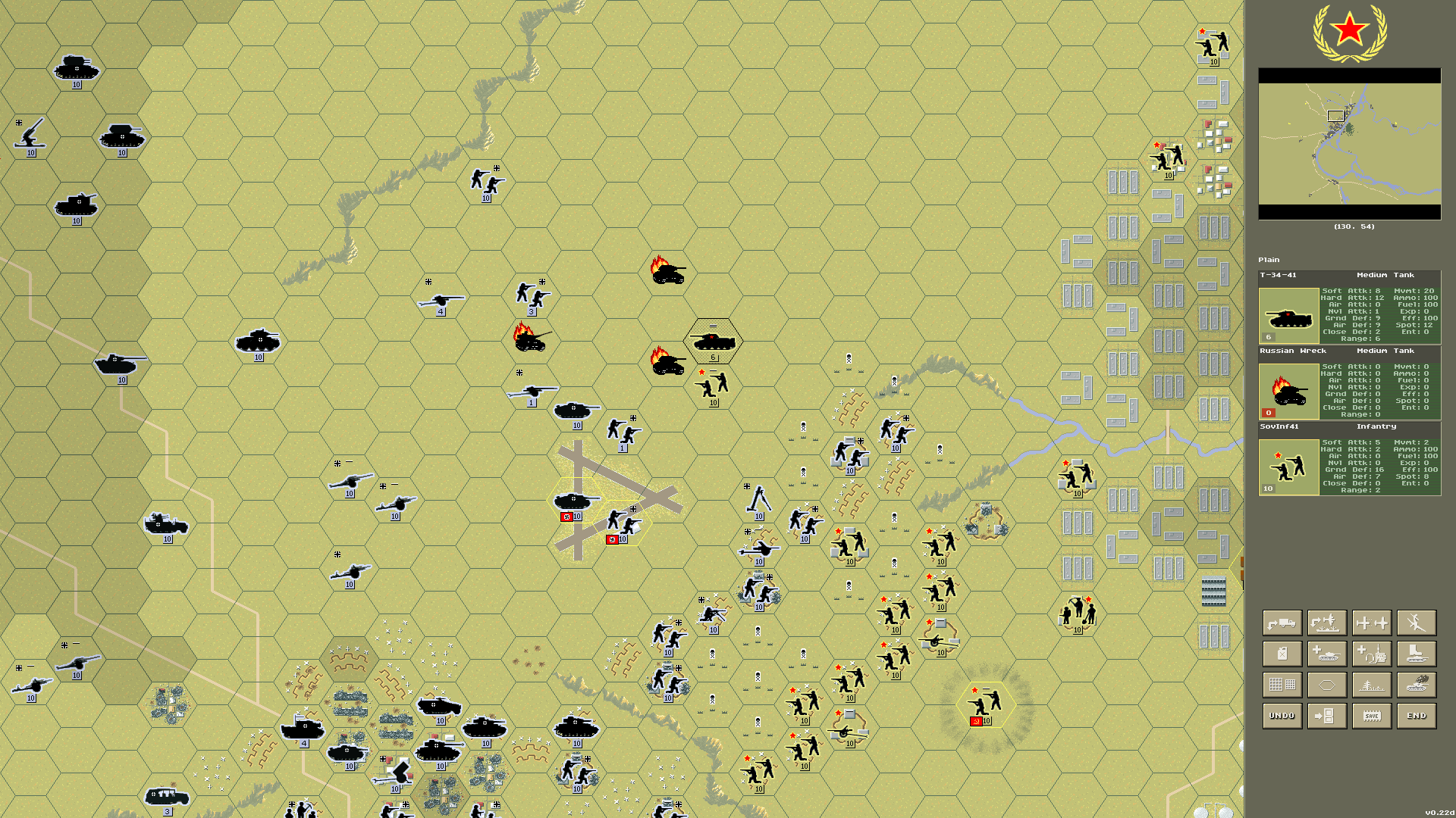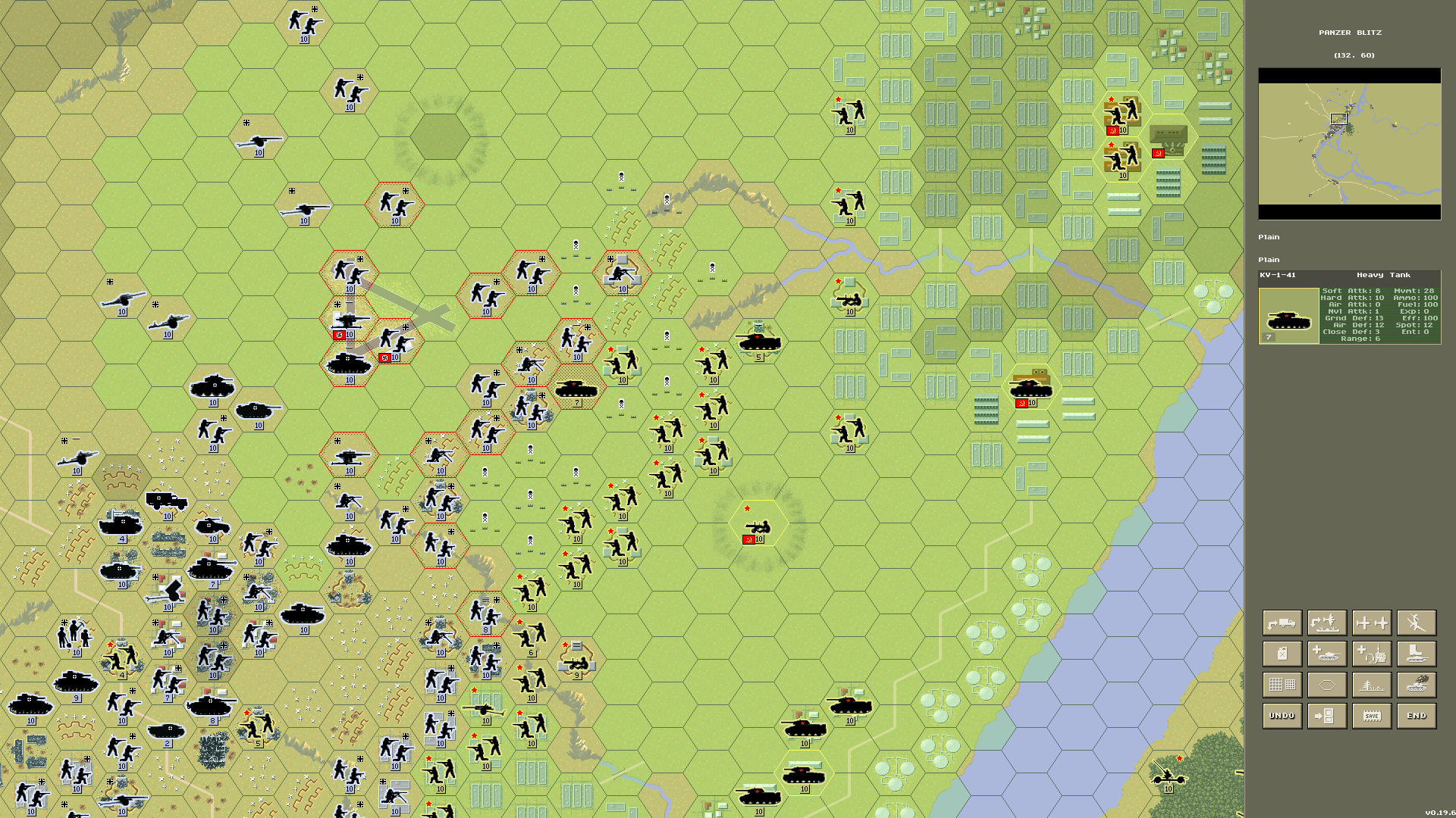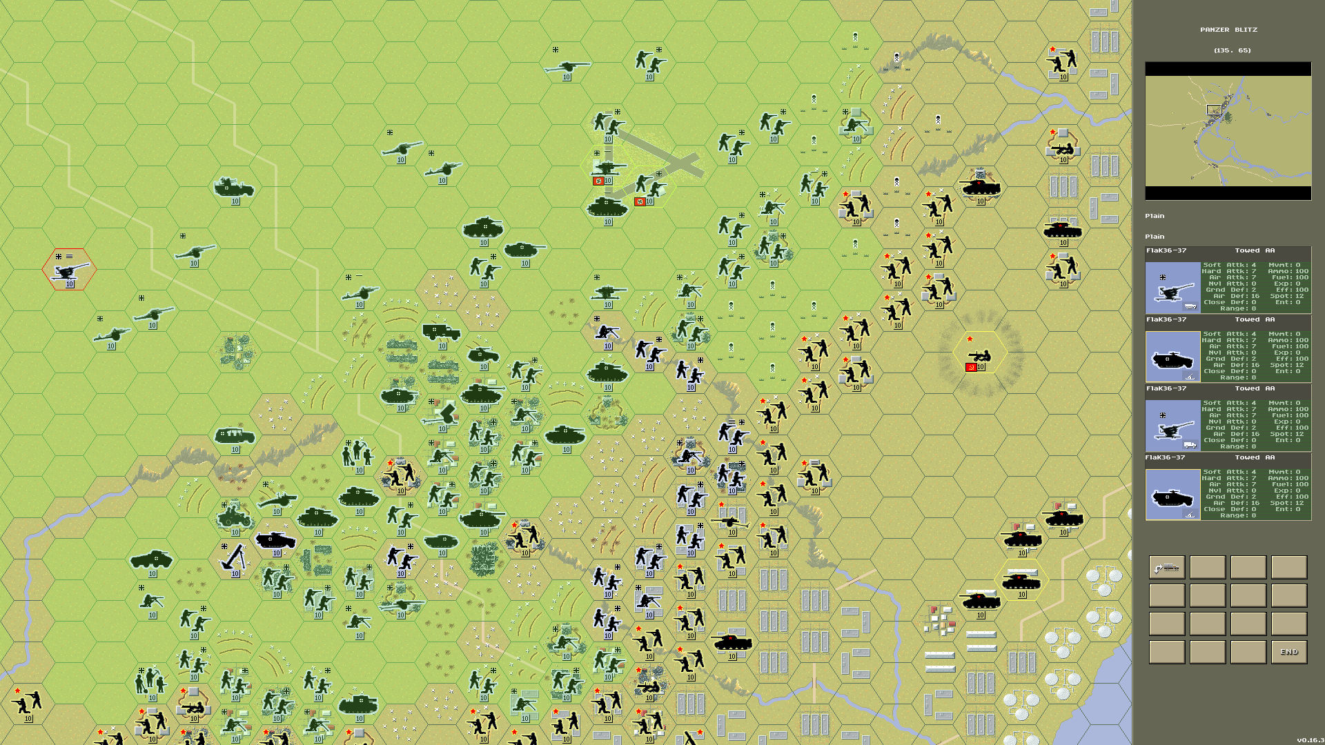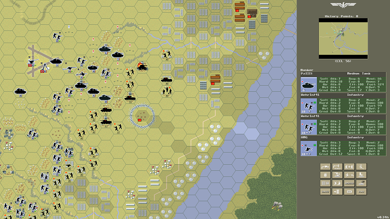 Larger control panel for better readability on smaller screens. Air and naval combat is now operational.